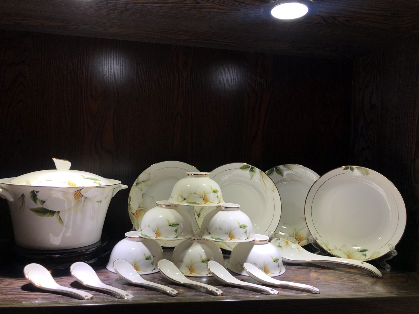 這次是與河北滄州的金盛達房地產開發有限公司合作定制的陶瓷餐具,該陶瓷餐具共有18件物件,加上定制的禮盒,精美大方,上檔次。