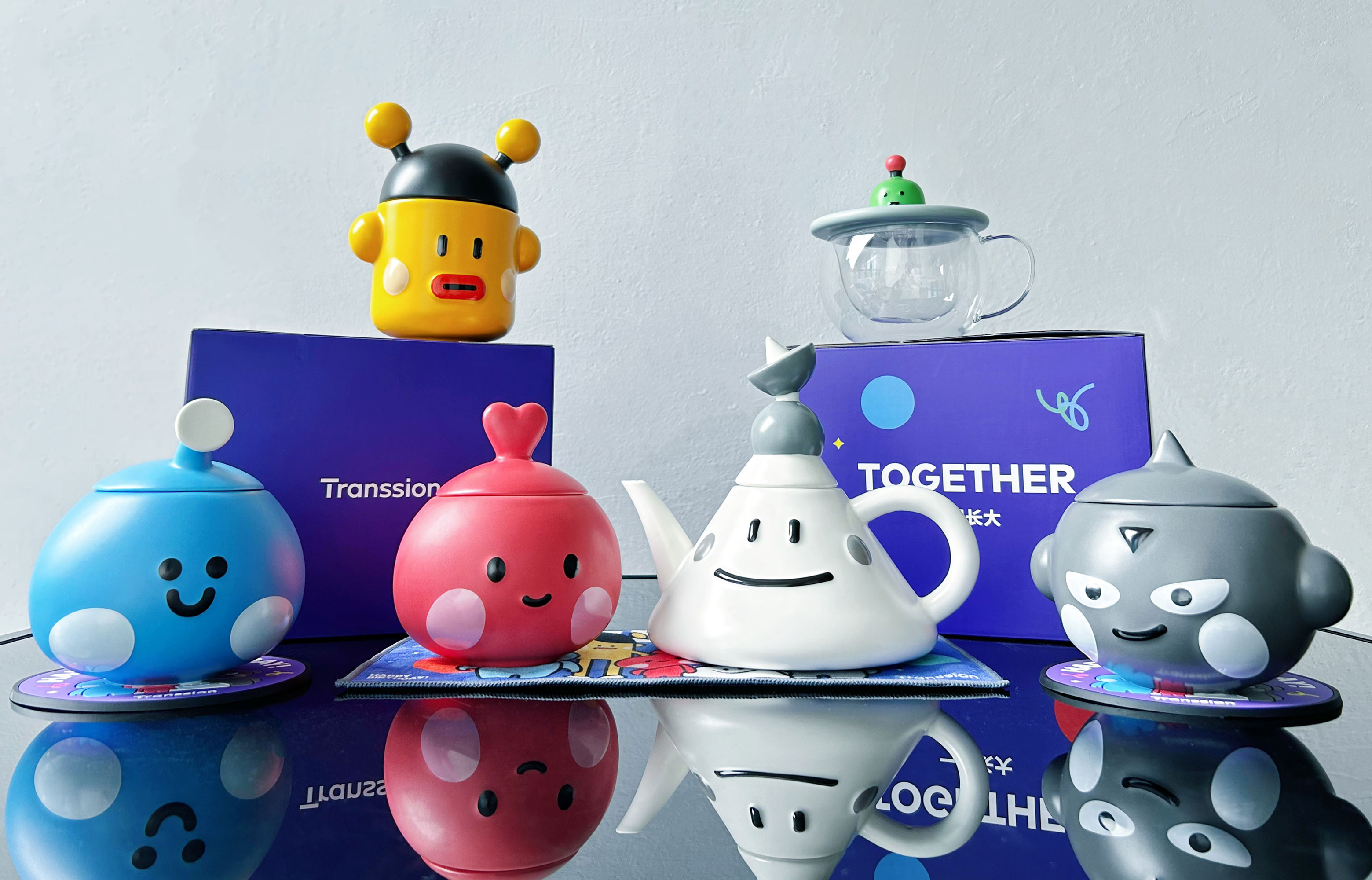 傳音控股以核心價值觀:用戶、尊重、開發、創新、共享、底線對應定制了五款陶瓷馬克杯和一款陶瓷茶壺。下面是我們的實拍圖: