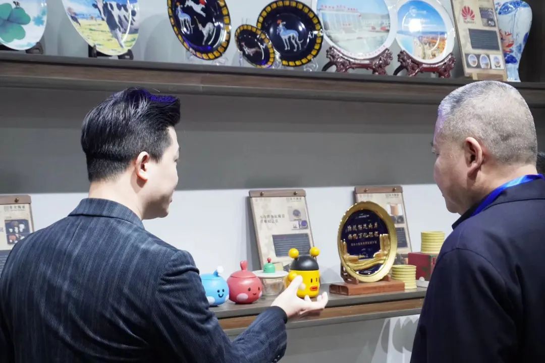 隨后公司總經理高劍偉在會議室向俞小平主席一行匯報了辰天陶瓷近況,詳細介紹了與辰天陶瓷合作的國內外知名品牌,作為首批“景德鎮制”官方授權的企業之一,辰天陶瓷已將“景德鎮制”商標廣泛應用于所生產的陶瓷產品中,將傳統文化與現代創新相結合,為景德鎮陶瓷文化的發展貢獻出自己的一份微薄之力。